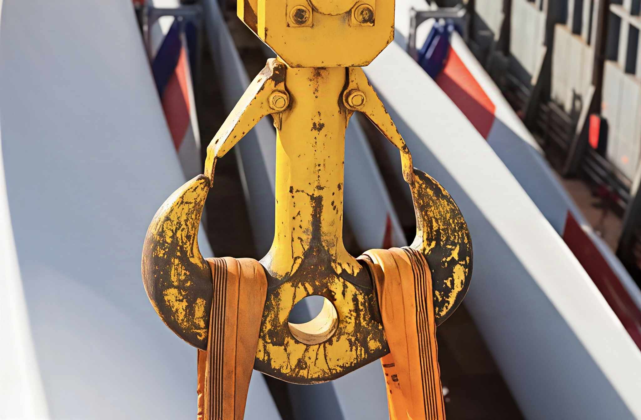 5.Rig the Load: Connect the sling to a crane or hoist with load-rated shackles. For basket hitches, ensure both loops are fully engaged at a 90° angle to double capacity. Confirm load stability and secure loose parts.