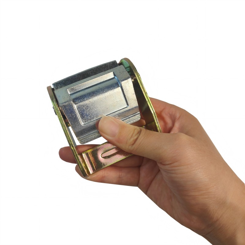A cam buckle strap is a lightweight tie-down consisting of a durable polyester webbing and a spring-loaded metal cam buckle. The strap is tightened by pulling the webbing and released by pressing the lever—no cranking action is needed. They are suitable for loads up to 1,500 lbs and are simpler to operate than ratchet straps, making them ideal for securing lighter cargo such as tools or furniture. Our 2-inch model (50mm width), featuring a 2,500 lbs breaking strength, meets ISO 9001 and CE standards and is trusted by professionals globally.